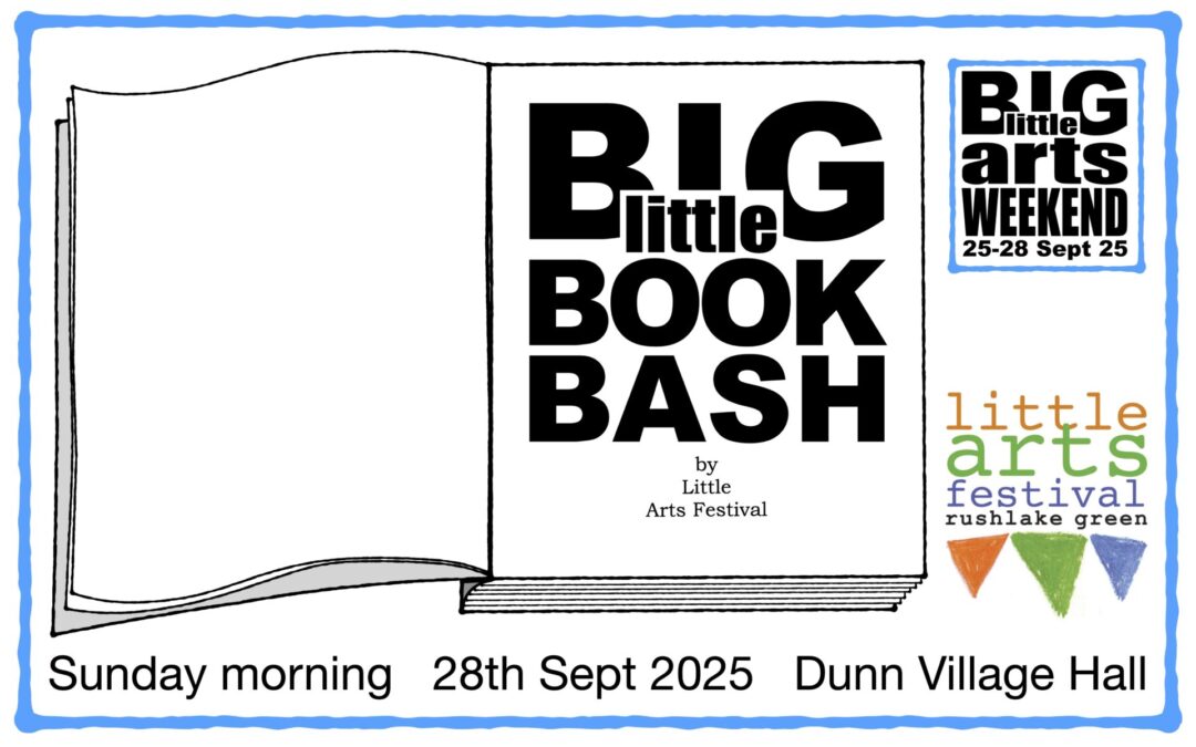 The Book Bash is back, by popular demand. Following on from the success of the book sale for local readers, during the 2024 Little Arts Festival, we’re planning a Book Bash as part of our Big Little Arts Weekend in September. We’d love to hear from local book clubs that would be ready to participate again. And if you’d like to volunteer to help prepare and run the event, please get in touch. The Book Bash is planned for Sunday morning 28th Sept 2025 Dunn Village Hall Rushlake Green All book donations ahead of the meet will be very welcome.
