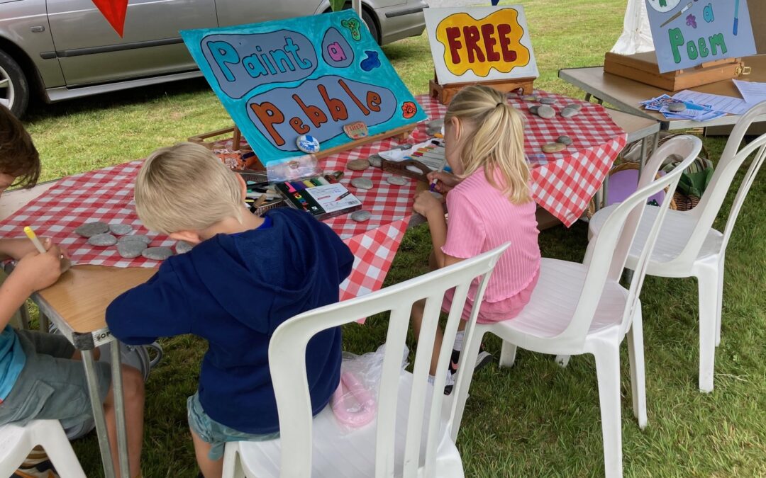 The Pebble Painting activity on the Big Little Arts Weekend stand at the Rushlake Green Summer show proved to be a big attraction and resulted in some brilliant Little Works of Art. It was great to see how immediately kids got the idea – starting to create artworks without a moment’s hesitation. There’s something about having a very small ‘canvas’ to play with that seems to free up people’s imaginations.
